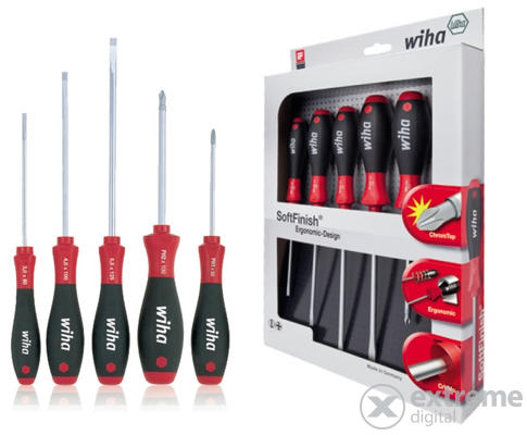 WIHA SoftFinish csavarhúzó készlet - 5 részes SL+PH Ergonomikus SoftFinish többkomponensű markolat Csavarhúzó markolatméret koncepció, megteremti az erő és irányíthatóság optimális egyensúlyát Nyomtatott csavar szimbólum a markolaton a gyors beazonosítás érdekében Kés zlet tartozékai: SoftFinish csavarhúzók: SL3,0x80 SL4,0x100 SL5,5x125 PH1x80 PH2x100 A WIHA-ról... A W