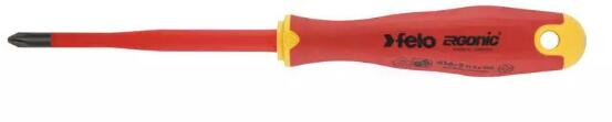 FELO vékonyított csavarhúzó szigetelt ERGONIC markolattal. Az egyetlen markolat, melynek a belsejében lévő zselés cella alkalmazkodik a felhasználó tenyeréhez, a maximális nyomaték kifejtése mellett, egyedülállóan kényelmessé teszi a munkavégzést. A csavarhúzó 1000 voltig használható. Minden darab 10.000 volttal tesztelt, megfelel az EN60900 szabványnak Mérete: PlusMinus
