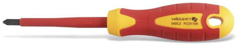 HÖGERT Csavarhúzó szigetelt 1000V, csillag, PZ0 60 mm, acél S2, mágneses (HT1S940) Termék információ: Ház anyaga: S2 acél Méret: PZ0 60 mm Feszültség alatt történő munkálatokhoz engedélyeztetett 1000Z PZ kereszthornyos csavarhúzó Kereszthornyos csavarok erőteljes csavarozásához Csavarral való érintkezési felületen további négy éllel erősített fej EN 60900 szabvány