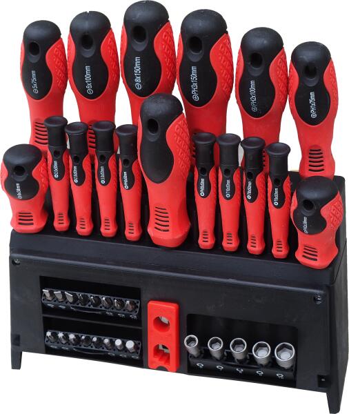 A Topex csavarhúzókészlet kiválóan alkalmas szerelési, barkácsolási munkákhoz. Kilenc csavarhúzó mindegyikének hegye nagy ellenállóképességű, a szerszámnak hosszú élettartamot biztosító króm-vanádium acélból készült. A mágneses hegy megkönnyíti a szerszámmal végzett munkát Az ergonómikus, csúszásmentes anyaggal bevont műanyag markolat biztosítja a kényelmet