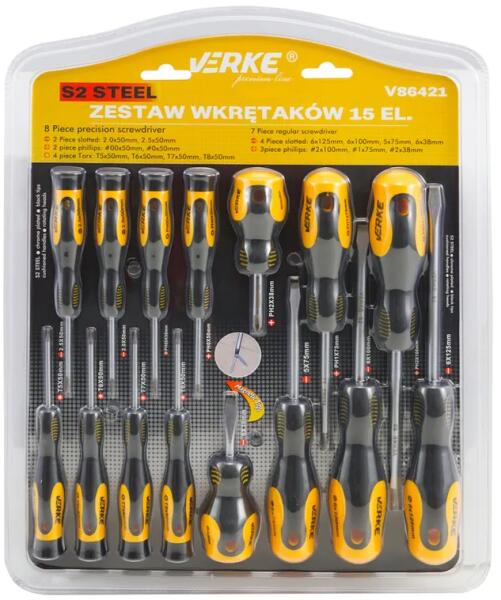 A legmagasabb minőségű S2 szerszámacélból készült mágneses csavarhúzó készlet, amelyet nagy keménységű HRC 58-62, egyenletes, finom szemcsés anyagszerkezet, csavarodási ellenállás jellemez. Az ergonómikus fogantyú biztosítja a szerszám biztonságos fogását, és a hatékony, pontos munkát. A fogantyú vége a csúcs típusának megfelelő szimbólummal megkönnyíti a megf