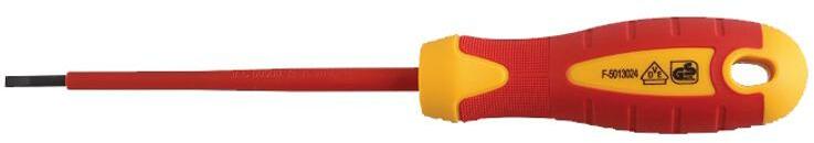 HÖGERT Csavarhúzó szigetelt 1000V, lapos, 2,5 x 75 mm, acél S2, mágneses (HT1S902) Termék információ: Ház anyaga: S2 acél Méret: 2,5 x 75 mm Feszültség alatt történő munkálatokhoz engedélyeztetett 1000V lapos csavarhúzó Erőteljes csavarozáshoz alkalmas Két oldalt polírozott csavarozó fejek, összetartó és párhuzamos profilozással A EN 60900 szabvány szerint gyártott