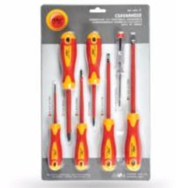 Stilo csavarhúzó készlet jellemzői Szigetelt kéziszerszám Szigetelési feszültség: 1000V A csavarhúzó készlet: 7 db-os Csillag: PZ2 x 100 mm ; PZ1 x 80 mm Lapos: 0,4 x 2,5 x 75 ; 0,8 x 4 x 100 ;1 x 5,5 x 125 ; 1,2 x 6,5 x 150 mm Fázisceruza VDE540307 S2-es fej Szabvány: VDE GS DIN EN60900:2004, VDE5453 07 Haszn&aacu