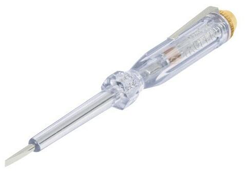 - Króm-vanádium acélból készült hegy - Átlátszó akril fogantyú, biztonságosan szigetelve - Jelzőlámpa biztosítékkal MŰSZAKI ADATOK hossz 19 cm mérés 100 - 500 V