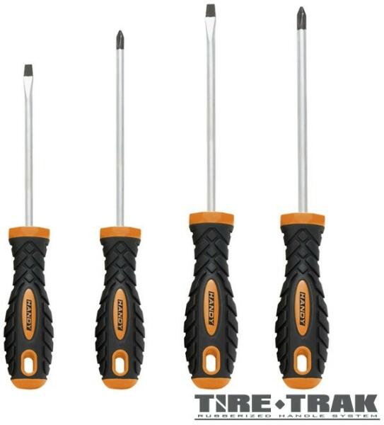 LEÍRÁS: A Handy csavarhúzó készletével könnyedén és gyorsan dolgozhat. A szárak nagy szilárdságú CR-V anyagból készültek, így ellenállnak a kopásnak. Az ergonomikus, csúszásgátló anyagból készült nyél, kényelmes és biztonságos munkavégzést garantál. Az akasztólyuk segítségével falon is tárolhatóak a csavarhúzók. Króm-vanádium acél szár Ultra kényelmes