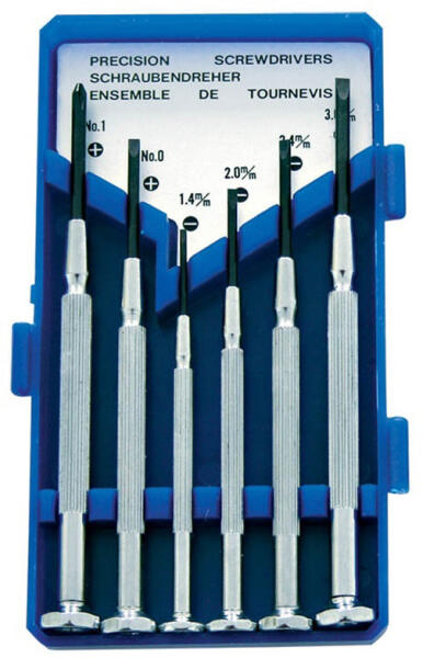 Tartalmaz: - lapos csavarhúzók: 1.4, 1.8, 2.4, 3.0 mm - csillagcsavarhúzók: (PH): PH0, PH1Műanyag dobozba csomagolva