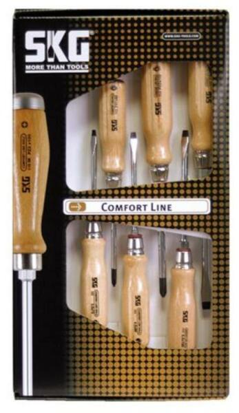 ERGO screwdriver with interchangeable blades set, 6 pcs ERGO handle with quick release bit holder 1/4" (lock-in type system for easy and safety lock) Handle: 3-component handle, for maximum user comfort and force transmission Easy to choose the right tip, with the colour-coded handle Hexagonal blades of 100mm. Phosphate finish Presented in atractive pouch with 6 blades. Hung belt pouch Retail pack