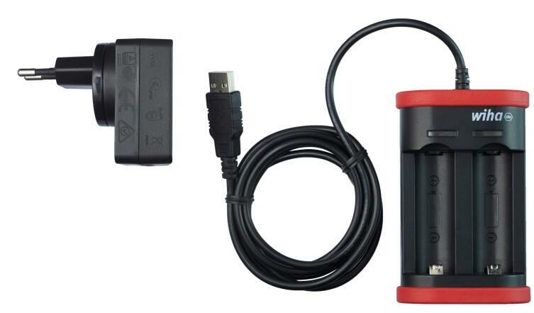 A SpeedE® e-csavarhúzó mindkét akkujának töltéséhez Töltőkészülék 18 500 Li-ion típusú akkuhoz USB aljzattal és Euro dugóval