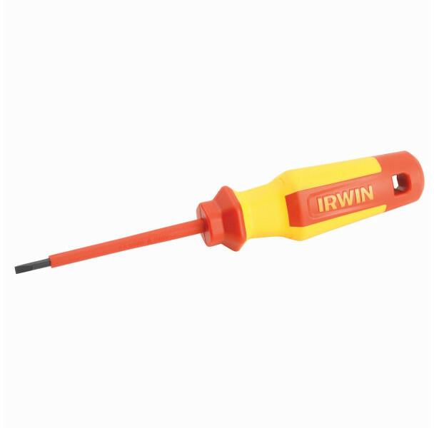 IRWIN Pro Comfort VDE csavarhúzó 3.5 x 80mm Ezek a csavarhúzók VDE tanúsítvánnyal rendelkeznek és alkalmasak 1000 V feszültségű elektromos munkákhoz. Az Irwin Pro Comfort csavarhúzókat a kényelem, a tartósság és a biztonság érdekében tervezték. Ergonómikus markolatot és korrózióvédelemmel ellátott króm-vanádium acél test jellemzi. A csavarhúzók fekete foszfátos, m