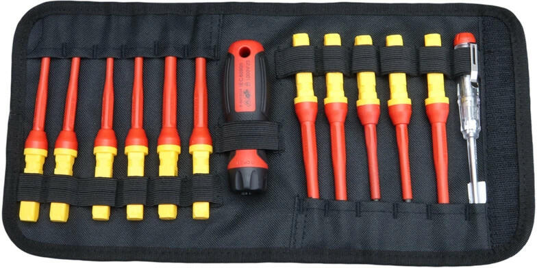 Tracon CSET13 1000 V-ra szigetelt csavarhúzószett 1000V, 13pcs PH csillagcsavarhúzók száma: 4 Csavarhúzók száma: 4 Fogantyú anyaga: műanyag Fogantyú kivitel: 2-komponensű Védőszigetelt 1000 V: Igen