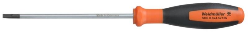 WEIDMÜLLER SDS 0.8X4.5X125 Csavarhúzó lapos fejű szerszámbetéttel, 0,8 x 4,5 (2749370000) Term ékinformáció: Hornyos csavarhúzó lekerekített pengével SD DIN 5265, ISO 2380/2, behajtó a DIN 5264, ISO 2380/1 szerint. Chrom Top hegy, SoftFinish markolat Adatlap letöltése