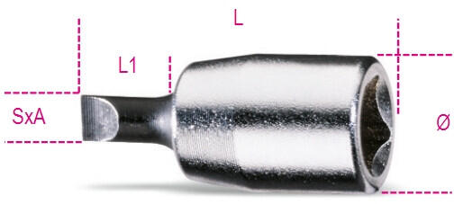 A KÉP CSAK ILLUSZTRÁCIÓ! JELLEMZŐK: Dugókulcs és tartozékok 1/4" TECHNIKAI SPECIFIKÁCIÓK: SxA mm1x5,5 Ø mm12 L mm28 L1 mm9
