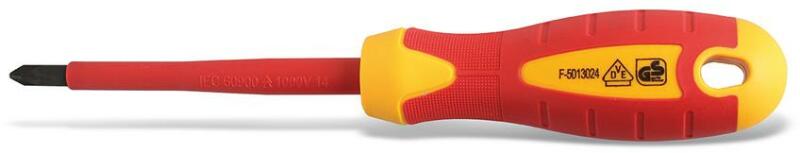 HÖGERT Csavarhúzó szigetelt 1000V, csillag, PZ1 80 mm, acél S2, mágneses (HT1S941) Termék információ: Ház anyaga: S2 acél Méret: PZ1 80 mm Feszültség alatt történő munkálatokhoz engedélyeztetett 1000Z PZ kereszthornyos csavarhúzó Kereszthornyos csavarok erőteljes csavarozásához Csavarral való érintkezési felületen további négy éllel erősített fej EN 60900 szabvány