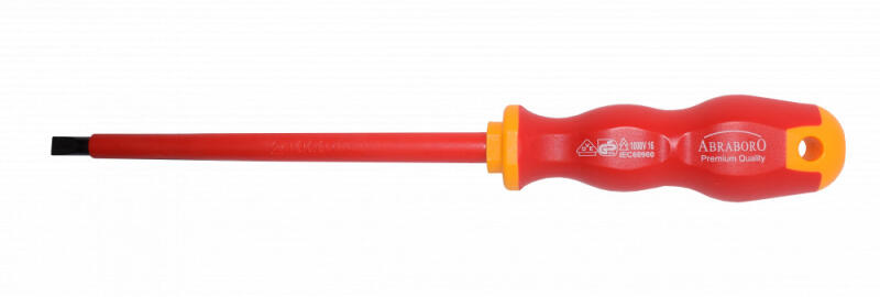 red line, piros nyéllelVDE, DIN EN 60900 és IEC 900 szabványok szerint, ipari és professzionális célokra. Penge: CroMoV-acélötvözet, szigetelt 1000 V Nyél: kétkomponensű (gumi + műanyag), ergonomikus dizájn, csúszásmentes, olaj- és vegyszerálló Méret: 23,0 x 0,5 x 100 mm