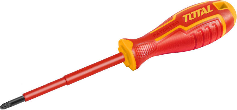 Szigetelt csavarozó PZ2*100mm / INDUSTRIAL (THTISPZ2100) Ez a szigetelt csavarozó PZ2*100mm / IND a biztonság és hatékonyság kombinációját kínálja. VDE+GS minősítésének köszönhetően akár 1000V feszültséget is biztonságosan kezel, így ideális választás elektromos munkákhoz. A Cr-V anyagból készült, kerek szára és az új kialakítású markolata kényelmes és stabil