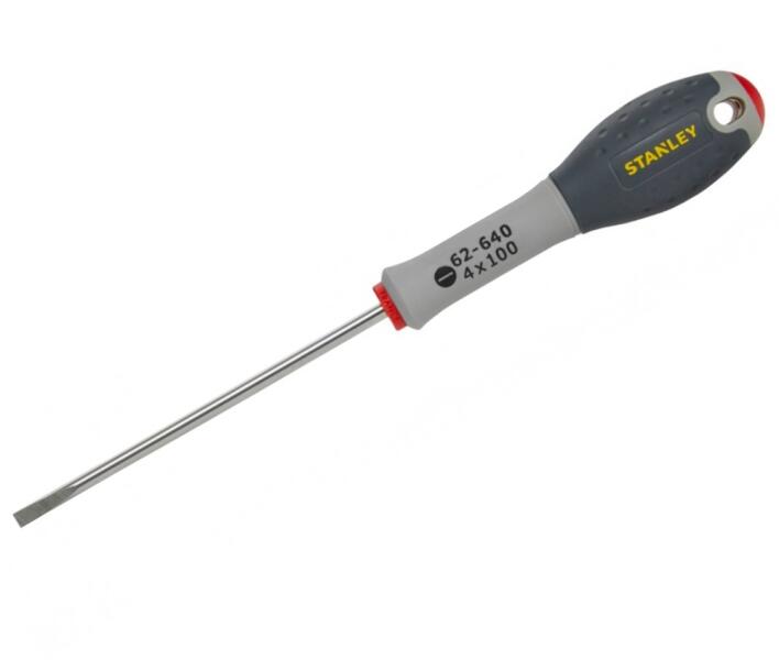 STANLEY FATMAX 4X100MM ROZSDAMENTES Rozsdam entes acél csavarhúzó párhuzamos Edzett acél rúd a tartósság érdekében Precíziós megmunkálású, kiváló fej rögzítő illeszkedés A három anyagú fogantyú kényelmes és biztos fogást eredményez Belső anyag közvetlenül a pengére öntve A nagy átmérőjű fogantyú gyors és kiváló nyomatékátvitelt eredményez Színkód