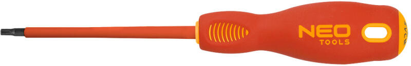 A NEO 04-074 Torx 1000 V csavarhúzó, T25 x 125 mm, szerelők által használt szigetelt szerszám. Legfeljebb 1000 V-os feszültséggel való munkavégzéshez használható, tartós S2 acélból készült. A csavarhúzó háromszög alakú markolattal és kontúros hüvelykujjtámasszal rendelkezik. A NEO márkájú termékek már több szezonon keresztül bizonyítottak.