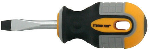 A Strend Pro mini csavarhúzó nem hiányozhat muhelyébol. Ez egy 5 x 38 mm-es lapos csavarhúzó. Ideális a lapos hornyú csavarok meghúzására és lazítására. A nyél muanyagból készült és kényelmes fogást biztosít, felakasztható.