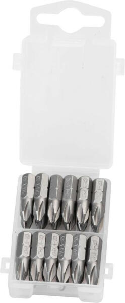 A 24 részes bitkészlet nem hiányozhat muhelyfelszerelésébol. PH2 25 mm biteket tartalmaz. Krómvanádiumból készült.