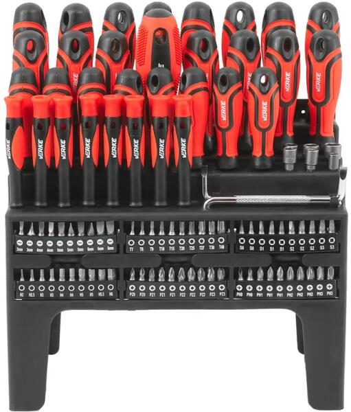 8 hornyos csavarhúzó: 8x150/6x150/6x100/5x125/5x100/5x75/4x100 /3x75 mm 6 db Phillips csavarhúzó: PH0x75/PH1x75/PH1x100/PH1x125/PH2x100/PH 2x150mm 4 Torx csavarhúzó: T8x75/10x75/15x100/20x100mm 4 négyzet alakú csavarhúzó: S0 0x75/1x75/1x100/2x100mm 2 ferde hornyolt/Philips csavarhúzó, 8 db precíziós csavarhúzó: lapos: 2,5x50/1,5x50 Phillips PH00x50/PH0x50 Torx típusú T6x50/T7x50/