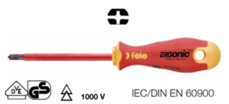 ELO H+/-2 szigetelt csavarhúzó, ERGONIC markolattal. Az egyetlen markolat, melynek a belsejében lévő zselés cella alkalmazkodik a felhasználó tenyeréhez, a maximális nyomaték kifejtése mellett, egyedülállóan kényelmessé teszi a munkavégzést. A csavarhúzó 1000 voltig használható. Minden darab 10.000 volttal tesztelt, megfelel az EN60900 szabványnak. Alkalmazása: pozidrive t