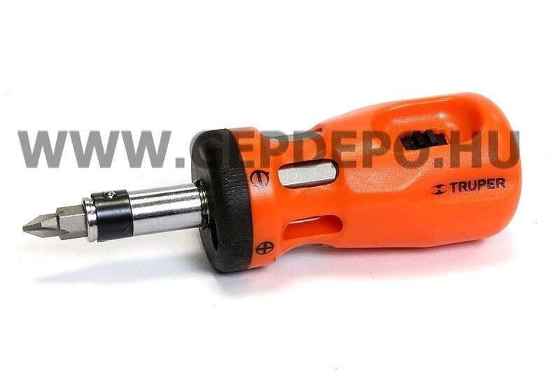 Truper multibit racsnis marokcsavarhúzó készlet - 12 az 1-ben 6 db kétoldalú bit:- 2 db lapos: SL 5 mm, SL 6 mm- 3 db kereszt: PH0, PH1, PH2, PH3- 6 db torx: T10 - T40markolat Praktikus racsnis marokcsavarhúzó, bittartós markolat, amely szűk helyen és zsebben is elfér. Tartós króm-vanádium (CrV) acél hegyek. A Truper 60 éves értékei a partnerségben és történelemben gyökerezn