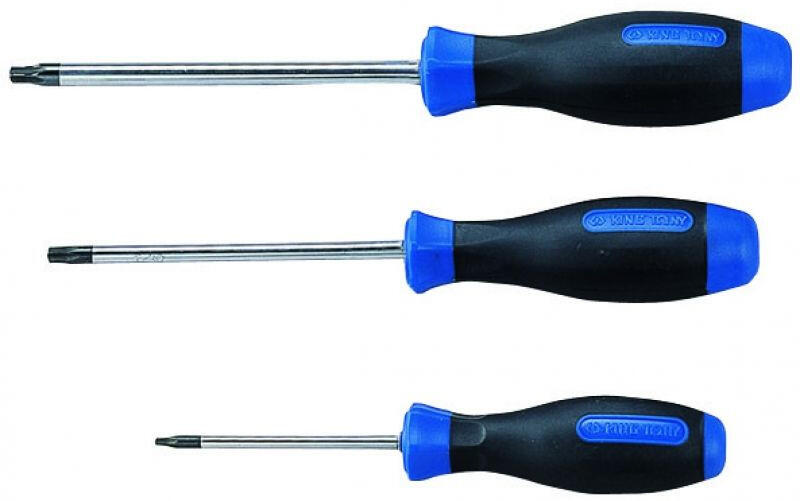 JELLEMZŐK: -Szár anyaga: S2-es acélból - SNCM + V ötvözött acélból -Felületkezelés: krómozás, a feje foszfátozott -2 komponensű gumis nyél anyaga: PP + TPR műanyag TECHNIKAI SPECIFIKÁCIÓK: Lyukas, fúrt torx T20 fej, Kerek Ø 5mm szárral Szárhossz 100 mm (A csavarhúzó fém szárának hossza) Súly 53 g