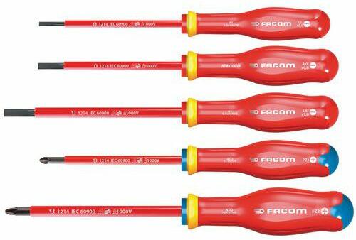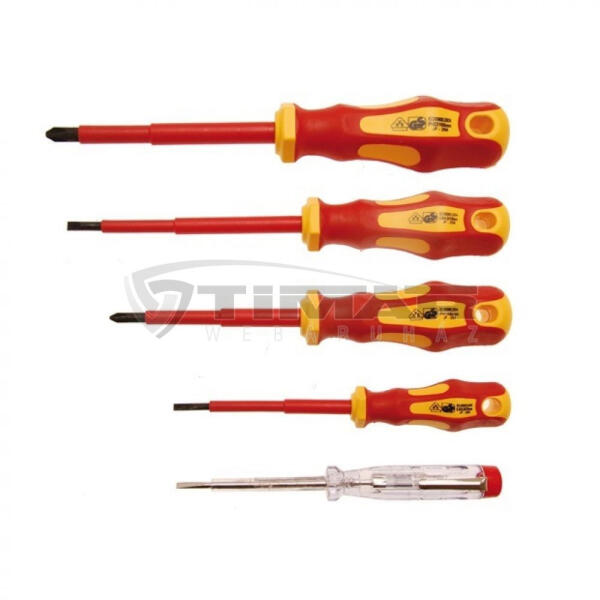 Szigetelt villanyszerelő csavarhúzó készlet 1000 V-ig terjedő feszültség alatti munkákhoz. Nagyobb kopásállóság. Puha nyél a nagyobb kényelemért és a vegyszerekkel szembeni ellenálló képességért. A penge felületkezelésének (cink-nikkel-króm) köszönhetően a csavarhúzók akár négyszer ellenállóbbak a korrózióval szemben. A CNC-megmunkálás biztosítja a csavar job