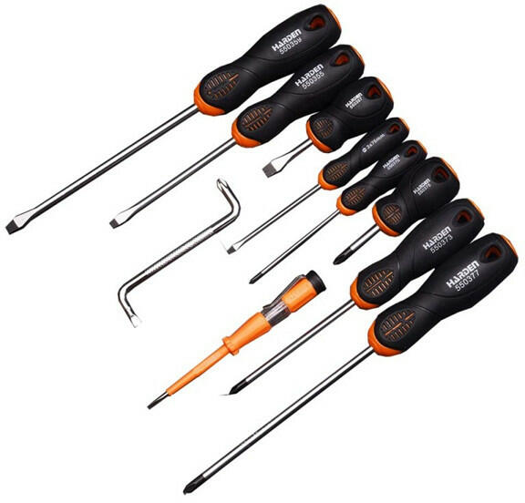 Jellemzők: - Edzett króm-vanádium acél - Gumírozott fogantyú, ergonomikus kivitel A készlet tartalma: Lapos: 6x38mm, 3x75mm, 5x100mm, 6x150mm PH2x38mm, PH2x150mm PH0x75mm PH1x100mm Fáziskereső 145mm Z alakú csavarhúzó