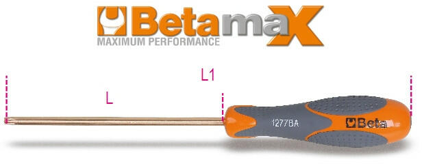 Imbusz-csavarhúzó Torx® csavarokhoz, szikramentes TX40 Réz-berillium ötvözet (CU-BE) A Beta szikramentes szerszámokat a BAM (Szövetségi Anyagkutató és Vizsgáló Intézet) a 99/92/EC Európai Irányelvnek megfelelően tanusítja. TX40