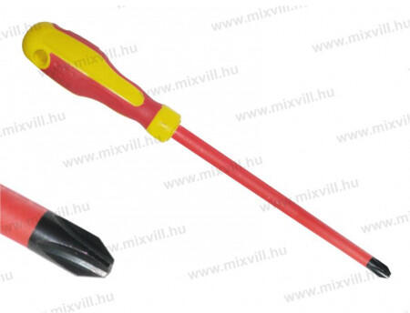 PH1 1x100mm (süllyesztett) A csavarhúzószár anyaga: króm-molibdén acél, feketített és mágnesezett heggyel A csavarhúzószár szigetelése: (Polipropilén) piros színben Markolat anyaga: PP (Polipropilén) sárga színben és TPR (Termoplasztikus gumi) piros színben Típusok: PH (Csillag) és SL (Lapos) hegyű csavarhúzók Szigetelési feszültség: 1000V Ezen csavarhúzók különleg