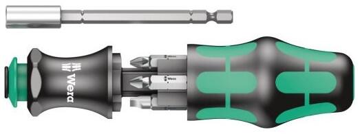 Többkomponensű csavarhúzónyél integrált bittartóval és racsnis funkcióval a magasabb munkasebességért, hatszög befogású bitekkel C 6,3 és E 6,3 szerint. Gyártói katalógusszám: Kraftform Kompakt 28 SB. Előnyök/Kivitel ergonomikus Kraftform® nyél finom fogazás a kisebb visszaállási szögért bittartó gombnyomásra nyílik állandómágnessel jobbra és balra fordulás zár