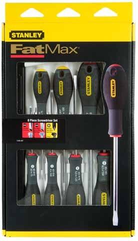 FatMax 8db-os csavarhúzó készlet, tartó dobozban. (párhuzamos, Ph) A nyél és a penge között extra erős összekötés. A penge kíváló minőségű ...