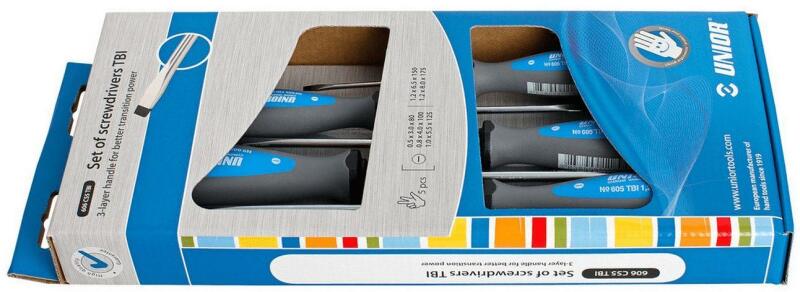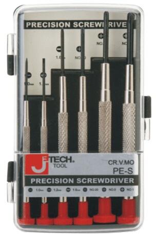 A készlet tartalma: 3 db lapos csavarhúzó: 1.0 mm; 1.2 mm; 1.6 mm 3 db Phillips® csavarhúzó: NO. 00; NO. 0; NO. 1