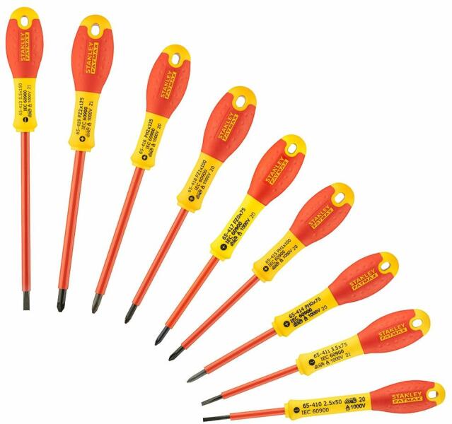 5 részes szigetelt csavarhúzó készlet 1000 V-os Magas minőségű acél penge ISO, DIN szabványok szerint Tartalomlapos: 2.5 x 50 mm, 3.5 x 75 mm, 5.5 x 150 mmcsillag: PZ0 x 75 mm, PZ1 x 100 mm, PZ2 x 125 mmphillips: PH0 x 75 mm, PH1 x 100 mm, PH2 x 125 mmfázisceruza