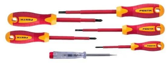 FELO PZ szigetelt csavarhúzó. A markolatban található furat segítségével könnyen tárolható a szerszám és egy másik FELO csavarhúzó segítségével extra nyomaték érhető el. A csavarhúzó 1000 voltig használható. Minden darab 10.000 volttal tesztelt, megfelel az EN60900 szabványnak. Alkalmazása: pozidrive típusú, általában facsavarokhoz. Méretei: PZ2, penge hossza: 100 m