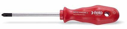 FELO PH csavarhúzó, különösen nagy igénybevételre tervezett, egy komponensű markolattal. A markolatban található furat segítségével könnyen tárolható a szerszám és egy másik FELO csavarhúzó segítségével extra nyomaték érhető el. Alkalmazása: Philips típusú - általában lemez- és gipszkarton csavarokhoz. Méretei: PH0, penge hossza: 60 mm, penge átmérője: 3,0 mm,