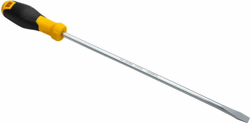 A Topex üthető lapos csavarhúzó besült, túl erősen meghúzott csavarok kilazítására, meghúzására szolgál. Hegye nagy ellenállóképességű, a szerszámnak hosszú élettartamot biztosító króm-vanádium acélból készült. A mágneses hegy megkönnyíti a szerszámmal végzett munkát A műanyagból készült ergonómikus markolat jól fekszik a tenyérben, növelve a munkavégz