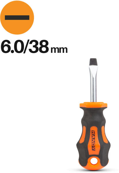 Legyen a munka könnyű! A megfelelő szerszám ehhez elengedhetetlen kellék. Ennek a csavarhúzónak a markolata, a kényelmes fogás és erőkifejtés érdekében formatervezett, amely elősegíti a megfelelő erő kifejtését munka közben. Króm-vanádium szár Ultra kényelmes és csúszásmentes fogantyú Akasztólyukkal Fej méret: 6.0 Szárhossz: 38 mm