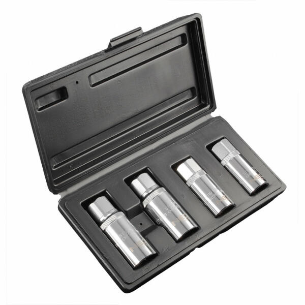 Neo tőcsavar kihajtók (kat. sz. 09-608). Önzáró tőcsavar kihajtók 4 db?os készlete, tipikus, 6, 8, 10 és 12 mm-es tőcsavarokhoz. A széles kiszedőkarok lehetővé teszik a tőcsavarok hatékony kihajtását a menetek sérülésének kockázata nélkül. Nagy ellenállóképességű, hosszú élettartamot biztosító króm-vanádium acélból készülnek. A szerszám minőségét bizony