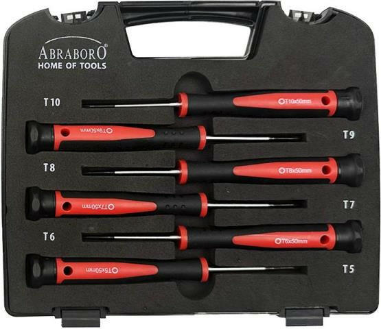 Műszerész csavarhúzó készlet 6 részes, Torx ABRABORO ABRABORO 6 részes Torx műszerész csavarhúzó készlet Tartalma: Torx 5 x 50 | Torx 6 x 50 | Torx 7 x 50 Torx 8 x 50 | Torx 9 x 50 | Torx 10 x 50