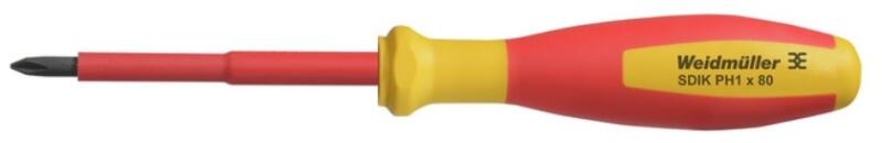 WEIDMÜLLER SDIK PH1 X 80 VDE szerint szigetelt kereszthornyos csavarhúzó, Phillips típus, 1. méret (2749890000) Term ékinformáció: VDE-szig etelt csillagfejű csavarhúzó Phillips csavarokhoz, SDIK PH DIN 7438, ISO 8764/2-PH, kihajtó ISO 8764- PH szerint, SoftFinish-markolat Adatlap letöltése