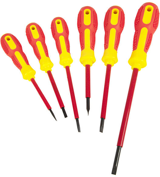 Cikkszám: 22.308Típus: 6.5X1.2X150Proxxon szigetelt csavarhúzó villanyszerelési munkálatokhoz, 1000V feszültségig. lapos fejű markolathossz: 75mm szárhossz: 150mm fej szélesség: 6,5mm fej vastagság: 1,2mm