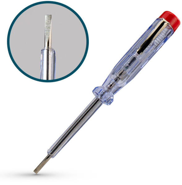 Lapos csavarhúzó 6x38mm Lapos csavarhúzó 6 mm széles heggyel, 38 mm-es hosszal, lapos fejű csavarok meghúzásához és meglazításához. A csavarhúzó nyele gumibevonatú a biztonságosabb fogás érdekében munka közben. Technikai paraméterek:Hossz: 38 mmHegy: 6 mm