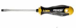 FELO lapos csavarhúzó hornyos csavarokhoz, ERGONIC markolattal, hatszög keresztmetszetű pengével. Az egyetlen markolat, melynek a belsejében lévő zselés cella alkalmazkodik a felhasználó tenyeréhez, a maximális nyomaték kifejtése mellett, egyedülállóan kényelmessé teszi a munkavégzést. A nyomaték növelhető szerelőkulcs segítségével, köszönhetően a pengén lévő er