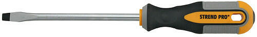 A Strend Pro csavarhúzó nem hiányozhat muhelyébol. Ez egy 8 x 150 mm-es lapos csavarhúzó. Ideális a lapos hornyú csavarok meghúzására és lazítására. A nyél muanyagból készült és kényelmes fogást biztosít, felakasztható.