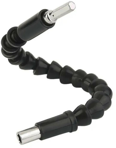 Flexibilis csavarhúzó hosszabbító Anyag: szerszámacél, pvc műanyag Méretek: 30 x 1.5 cm. Szín:, fekete. Hosszabbítható flexibilis csavarhúzó. Kiváló és extrém rugalmas csavarhúzó hosszabbító. Nélkülözhetetlen eszköz egy fúróhoz vagy csavarhúzóhoz, főleg hogyha fúrnia kell egy nehezen hozzáférhető helyen. A rugókból és csapágygömbökből álló kialakítás az