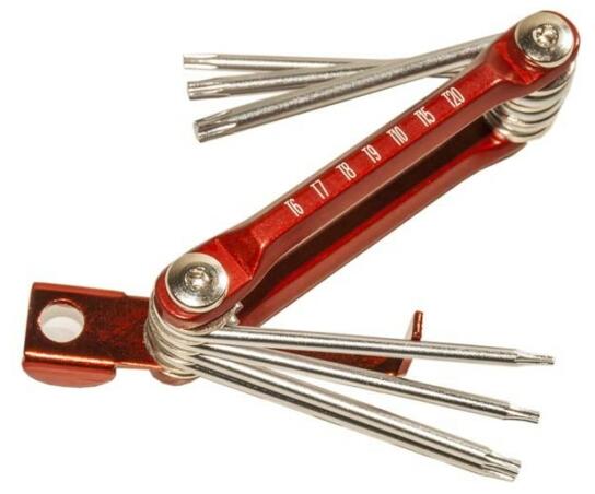Termékadatok: Összecsukható (bicska) külső torx kulcs készlet Méret: T-6, 7, 8, 9, 10, 15, 20 Szár hossza: 50 mm Hosszúság: 85 mm Szélesség: 34 mm Magasság: 15 mm Anyag: Króm-vanádium acél A szerszámacélok legfontosabb tulajdonságai a keménység és a kopásállóság A vanádium tovább növeli a keménységet és a kifáradással szembeni ellenállást A króm az acélt rozsd