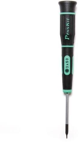 Precíziós torx csavarhúzó . ProsKit Jellemzők: - méret: T3 - szárhossz. : 50mm - markolat hossz. : 95mm - csúszásmentes műanyag markolat - forgósapka a markolat végén Egy tökéletesen ergonómikus kialakítású csavarhúzó mely erős, ugyanakkor komfortos is. Különleges polypropilén fogó és szár jellemzi. A strapabíró, felület-hőkezelt chrome-vanádium szár fekete mágne