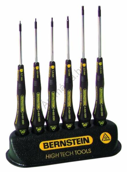 Hatszög csavarhúzó készlet, állványban, 6 részes Praktikus, a munkát elősegítő, vezetőképes anyagból készült asztali állványban. Műszaki adatok: Alkalmazás: ESD · Csavarhúzó típus: Csavarhúzó készlet · Elhajtás: Belső hatlap Szállítás tartalma: Hatszög csavarhúzó, laptáv 0,7 mm, pengehossz 50 mm, nyélhossz 100 mm, Hatszög csavarhúzó, laptáv 0,9 mm, pengeho